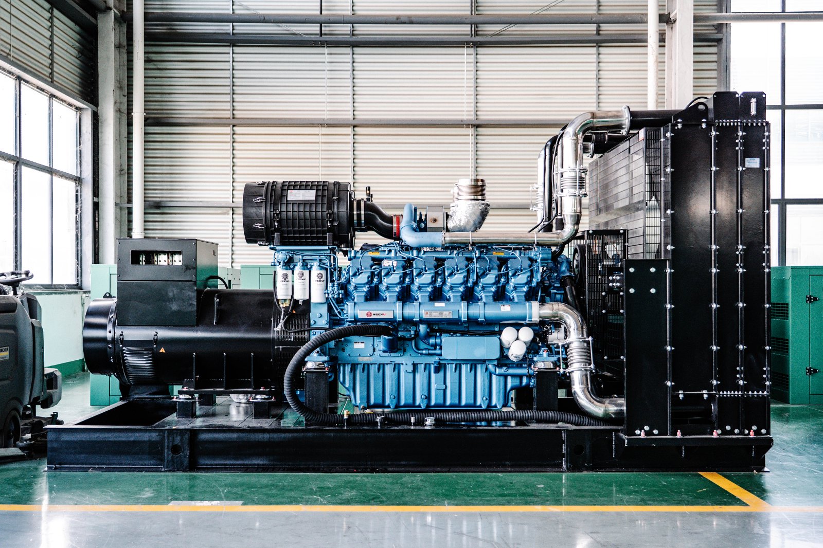 通常情况下,对于固定式发电机组,柴油机的功率应约为发电机功率的1.35倍;对于移动式发电机组,这一比例则建议提高至1.6倍。这种“大马拉小车”的配置,既能确保发电机在满载时输出稳定,也能让柴油机在遇到瞬间冲击时游刃有余,有效延长整机寿命。